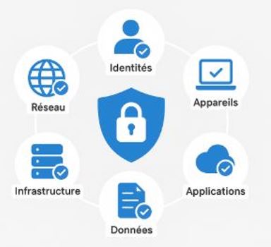 S’assurer que les appareils (PC, mobiles, IoT) respectent les normes de sécurité avant d’accéder aux ressources. Outils : Microsoft Intune, gestion des points de terminaison, conformité des appareils.